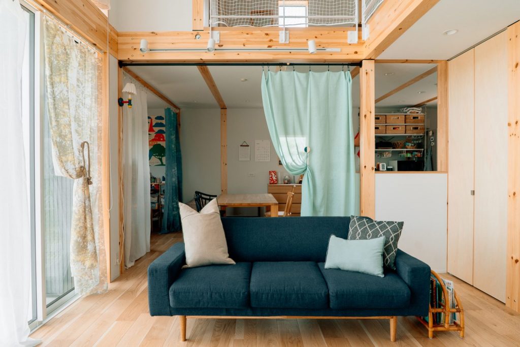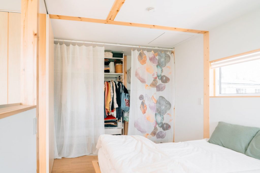 窓辺に吊るすとカーテンとして活躍をしてくれる14-23は、キレイに光を部屋に取り込んでくれます。ときには、お部屋の間仕切りとしても使うこともきます。簡単に取り付けて洗濯もできるので、一人暮らしを始める方にもオススメのアイテムです。