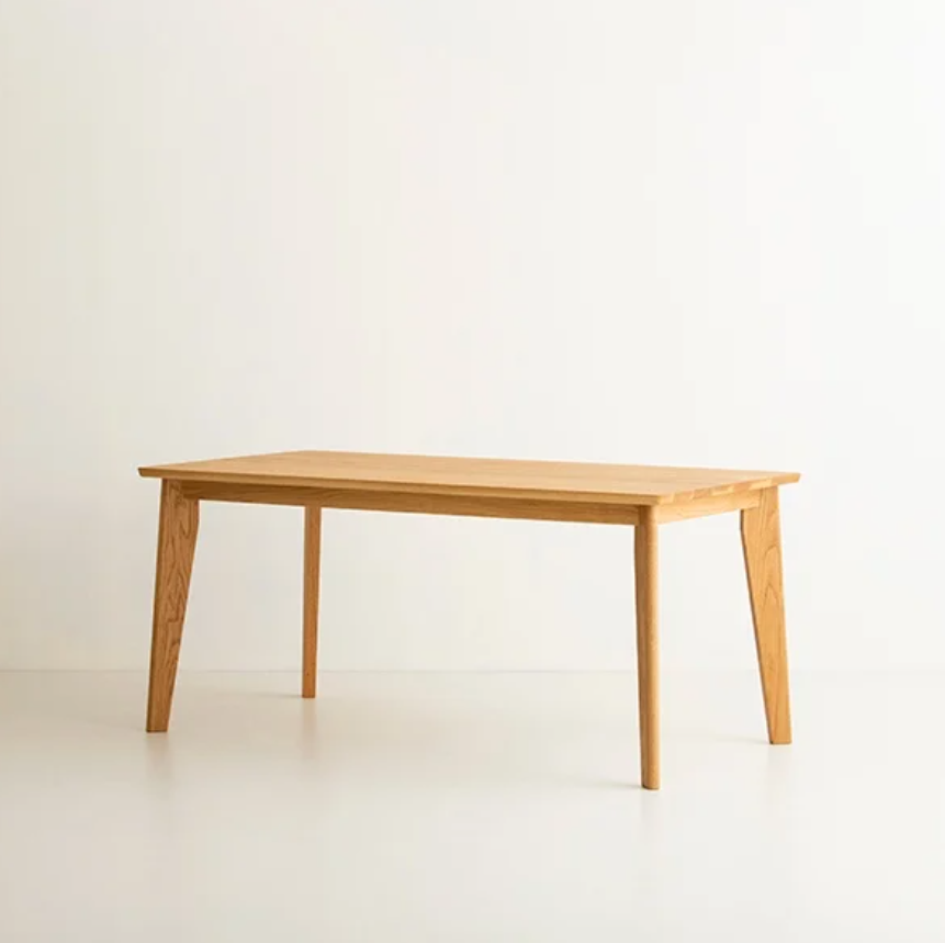 筋肉質のふくらはぎのようなボリューム感のあるデザインが、Enough(イナフ) ダイニングテーブルの一番の個性です。天板のエッジに傾斜をつけることで、存在感がありながらもすっきりとしたフォルムが印象的です。