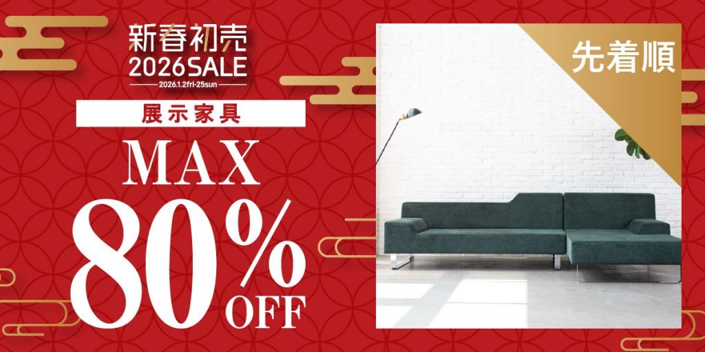 展示家具が最大80%OFFの大特価!現品限りの早い者勝ちなので、お見逃しなく!
