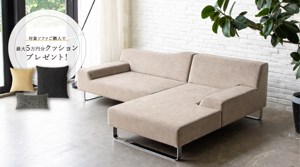 5/31(日)までに対象ソファご購入で、最大5万円相当のクッションをプレゼント!!