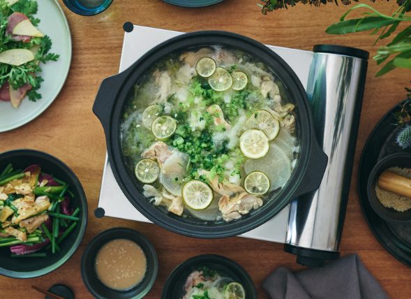 調理する人も食べる人も一緒になって美味しい時間をシェアできるKAKOMI。季節を感じながらいただく料理、テーブルを囲んで穏やかに語らう時間が愉しめる調理道具です。